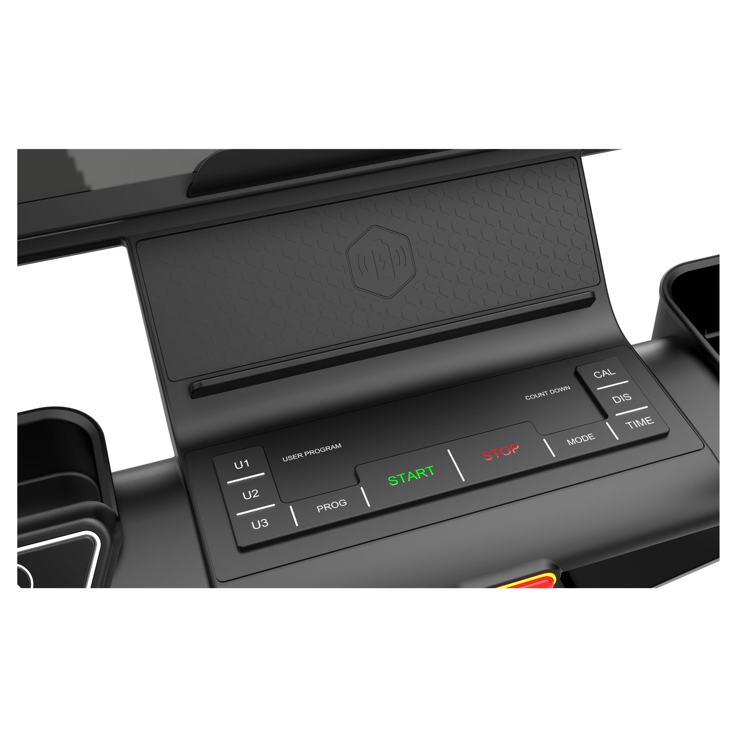 La pantalla LED de alta definición muestra datos de velocidad, distancia, tiempo, calorías e inclinación con nitidez en cualquier condición lumínica, permitiendo un seguimiento preciso de tus métricas. La conectividad Bluetooth FitShow + RunMusic sincroniza tu plan de entrenamiento con tu música favorita, creando una experiencia inmersiva y motivadora. La carga inalámbrica de 10 W mantiene tu dispositivo siempre operativo, sin enredos de cables que interrumpan tu flow.