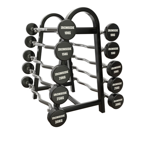 Set 10 Barras Mixtas Peso Fijo CPU (10 a 30kg) + Rack de Almacenamiento IRONSIDE