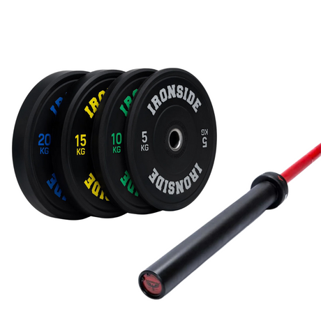 $1.449.990$1.599.890Precio unitario /AgotadoPack IRONSIDE Barra Fullpower 20 kg + Set 230 lb Discos Bumper Hi-Temp