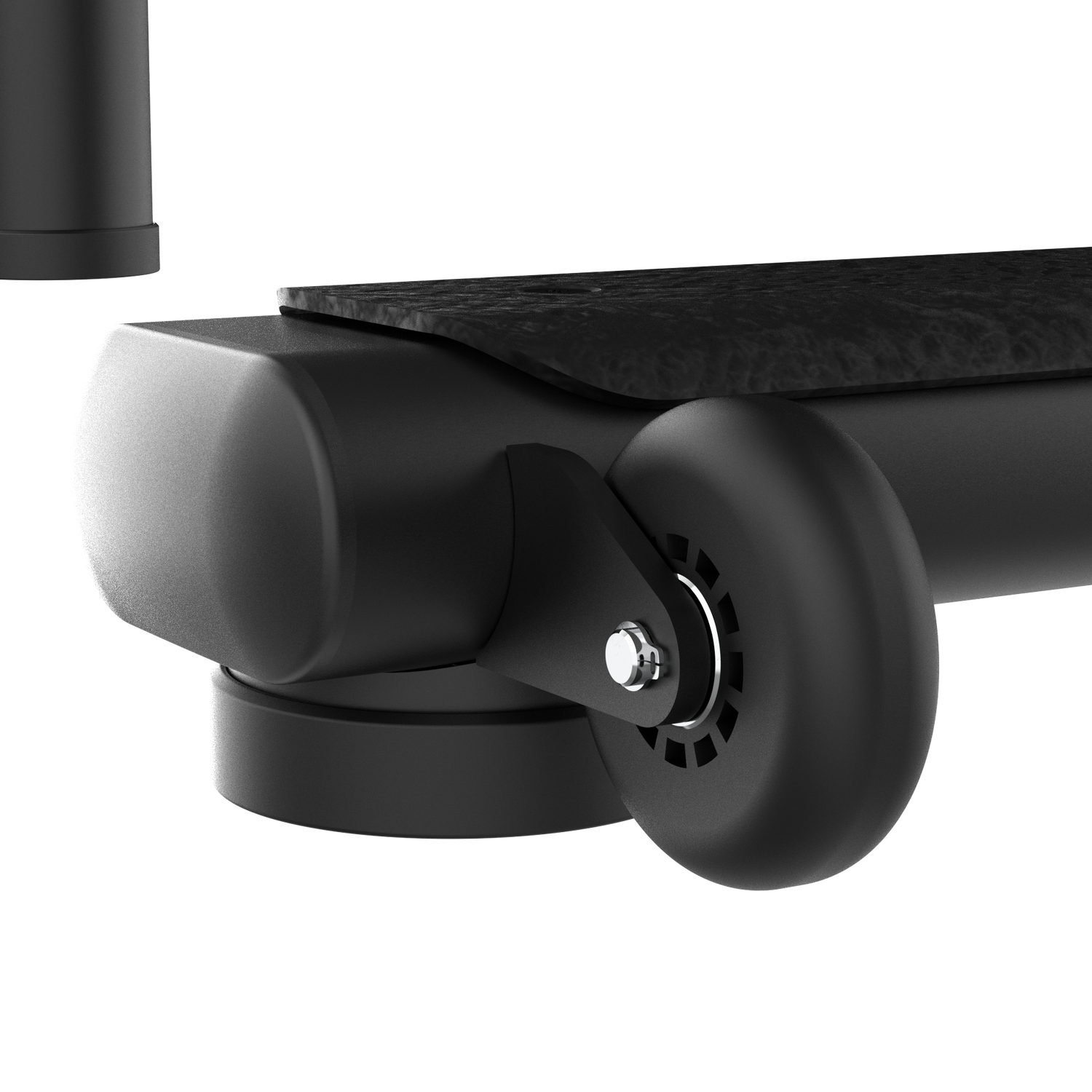 Aunque es robusto, moverlo es sencillo: las ruedas traseras y el asa frontal engomada permiten desplazarlo de la jaula al área de mancuernas sin cargarlo a pulso. En un box con espacios compartidos esto acelera los cambios de estación y evita interrupciones entre series, manteniendo el ritmo de la clase o del entrenamiento personal. Lo ubicás, lo apoyás y queda firme; no hay que calzarlo ni poner calzas improvisadas.