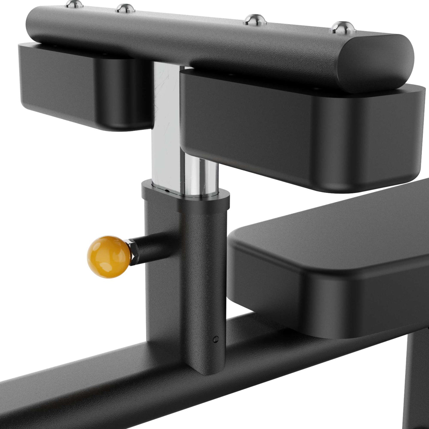 El diseño de soportes cromados para discos deja la estación ordenada y acelera la logística entre series. En home gym, el beneficio es igual de claro: menos pasos, más trabajo efectivo. Y gracias al sistema de ajuste por perno con resorte, cualquier usuario encuentra su seteo en segundos, lo repite sesión tras sesión y lleva un registro de progresión confiable sin variaciones por mala postura.