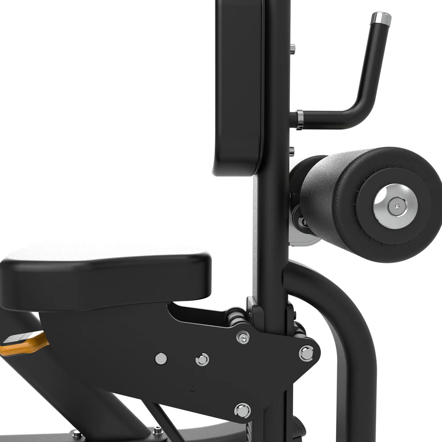El asiento y las rodilleras regulables con resorte de gas permiten acomodar la máquina a tu medida con rapidez y precisión, dándote estabilidad en todo el recorrido del movimiento. Esto es clave para proteger la zona lumbar y mantener la técnica perfecta aun cuando levantás pesado.
