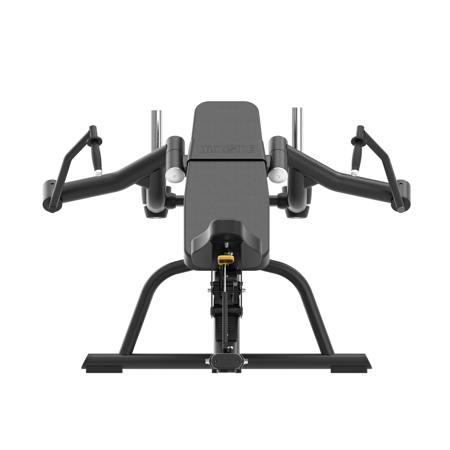 El respaldo ergonómico fue diseñado para respaldar escápulas y columna torácica sin invadir la ruta de fuerza. Ese detalle, sumado al apoyo lumbar estable, te ayuda a mantener las costillas “abajo” y el pecho activo sin arqueos excesivos, logrando repeticiones más seguras y eficientes cuando buscás volumen con rangos completos o trabajos de pre-fatiga antes del press.