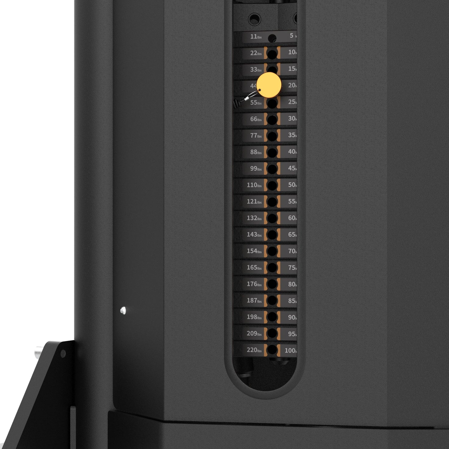 Con 100 kg por torre (máximo 100 kg por torre) hay margen real para progresiones de fuerza y para bloques de volumen con tiempo bajo tensión. La resistencia se siente lineal, por lo que la técnica no se rompe cuando fatiga, y la comparación entre sesiones es honesta: si repetís el mismo seteo y la misma placa, la sensación es la misma. Eso da confianza para decidir cuándo subir, mantener o ajustar sin especular.